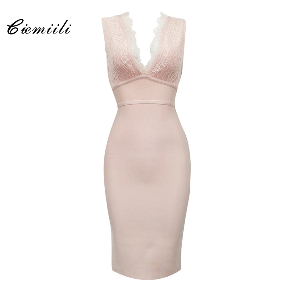Special Offer CIEMIILI 2018 vestidos de encaje sólido sin mangas hasta la rodilla Rosa negro rojo blanco noche fiesta Sexy nuevos vestidos de mujer Discount 0% Today!