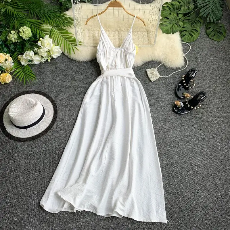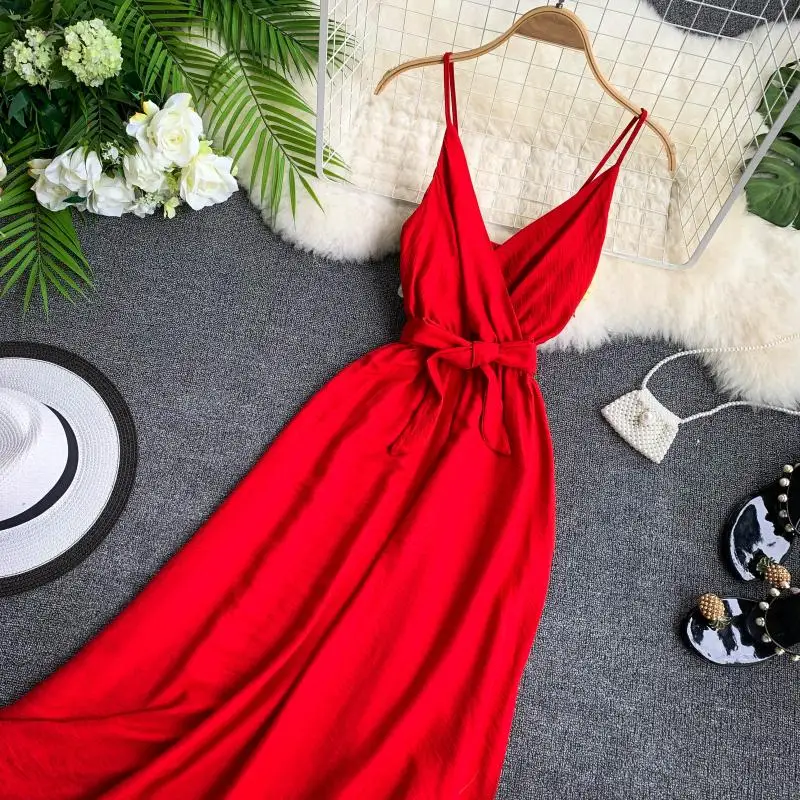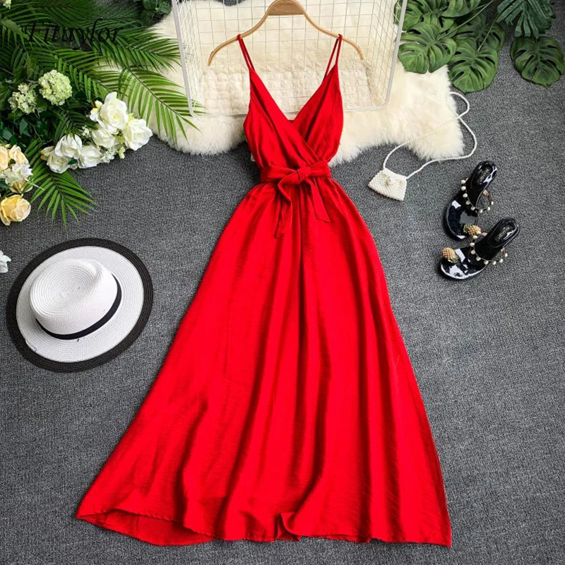 Special Offer Fitailor 2020 Vestido de verano para mujer Sexy cuello en V fajas Vestido rojo blanco negro sin mangas espagueti Correa Vestido de playa Vestido Discount 35% Today!