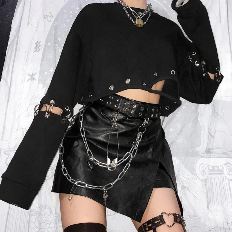 Special Offer Darlingaga Punk gótico negro otoño sudadera pulóver Cropped Hoodies mujeres Tops Streetwear desmontable sudaderas Jumper Ring Discount 40% Today!