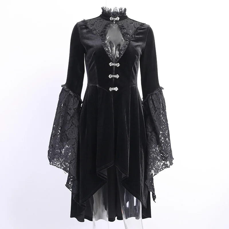 Special Offer Goth negro oscuro Vintage gótico Halloween vestidos malla otoño 2019 invierno plisado vestido femenino ahueca hacia fuera estética elegante Chic Discount 40% Today!