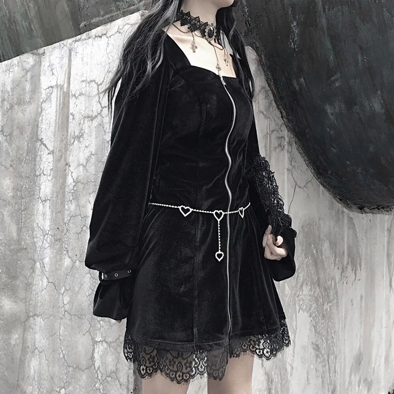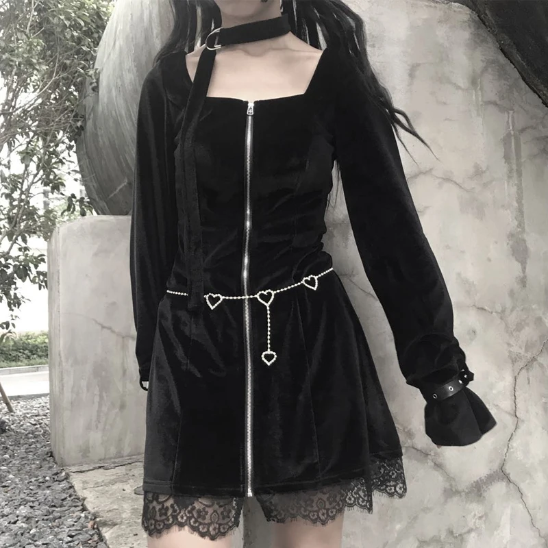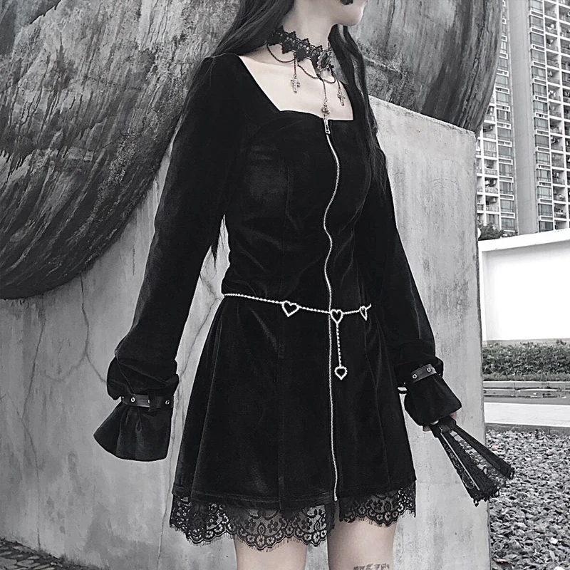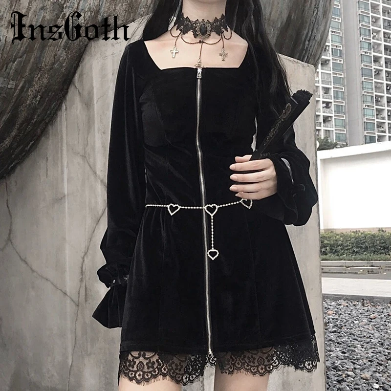 Special Offer InsGoth Vintage Mini vestido negro mujer gótico Streetwear encaje Patchwork manga larga otoño femenino vestido de fiesta vestido informal para mujer Discount 45% Today!