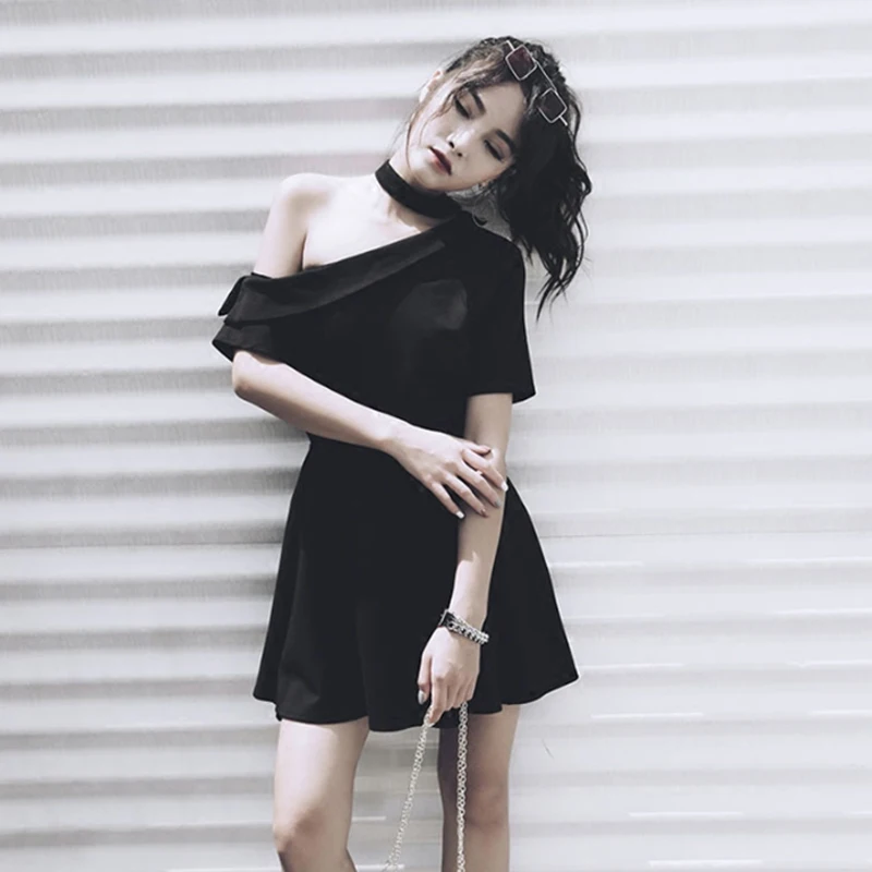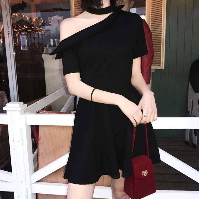 Special Offer Vestidos de mujer Sexy vestido de verano de diseño asimétrico para chica gótica Chic gargantilla de hombro diseño negro Discount 20% Today!