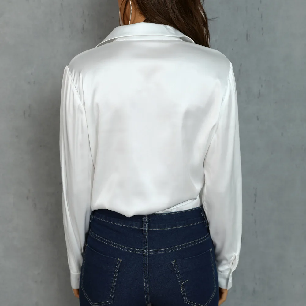 Special Offer Mujeres OL satén seda blusa botón seda satén para mujer blusa camisa Casual blanco negro oro rojo manga larga blusa de satén Discount 25% Today!