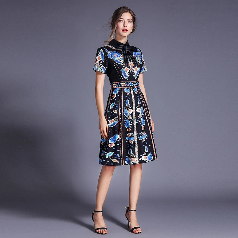 Special Offer Vestido de pasarela de diseñador de moda de calidad 2019 Verano de manga corta Vintage Floral estampado Casual elegante vestido negro Discount 30% Today!