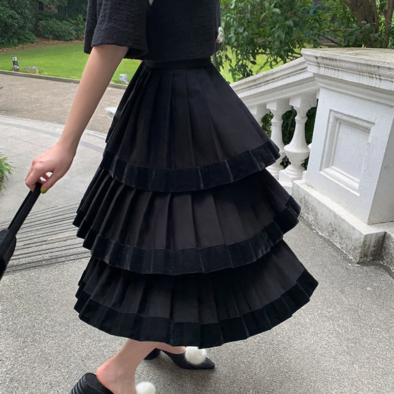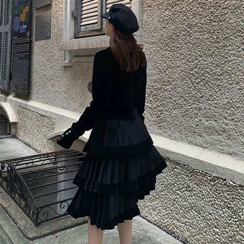 Special Offer XITAO Patchwork Vintage volantes Multi capa Falda Mujer 2019 otoño nuevo estilo negro Natural cintura una línea falda elegante GCC2095 Discount 30% Today!