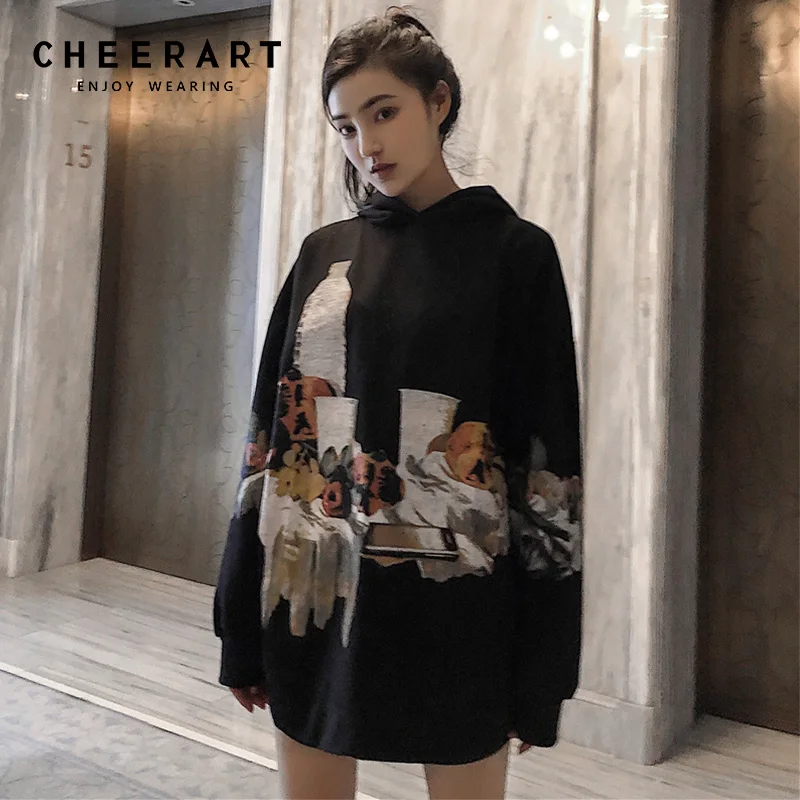 Special Offer Cheerart Sudadera con capucha larga para mujer sudadera de gran tamaño con capucha negra de lana de invierno Sudadera con capucha mujer Harajuku Streetwear Discount 40% Today!