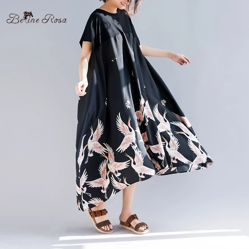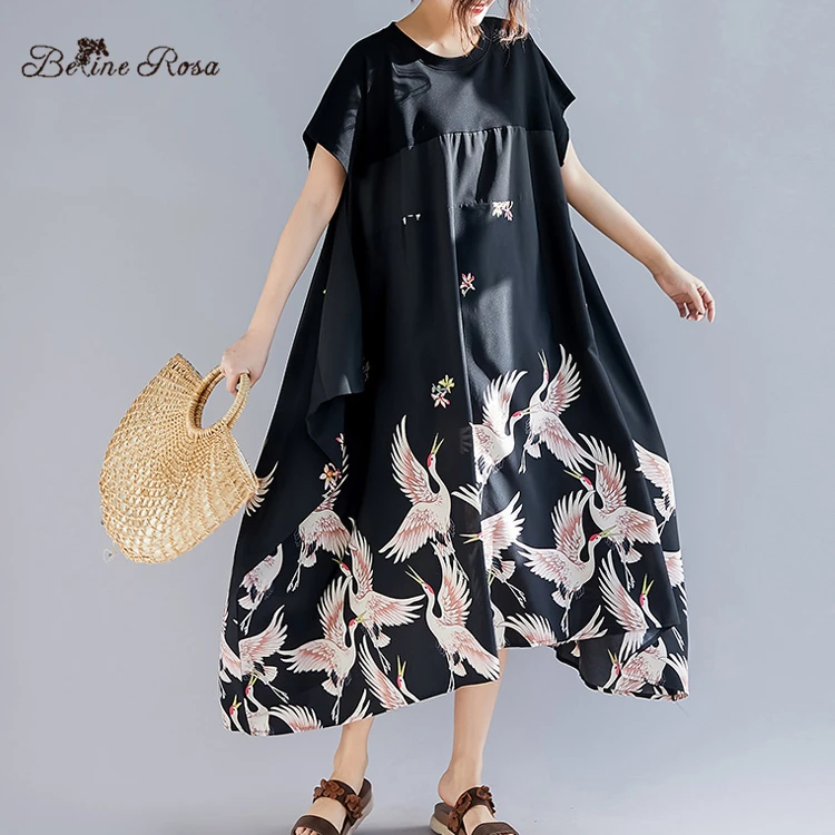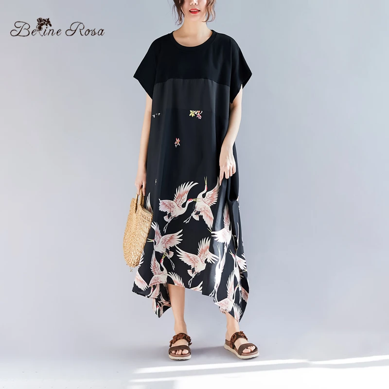 Special Offer BelineRosa 2019 verano vacaciones Casual estilo camisa vestidos elegante impresión Irregular dobladillo negro de talla grande vestido túnica TYW00972 Discount 45% Today!