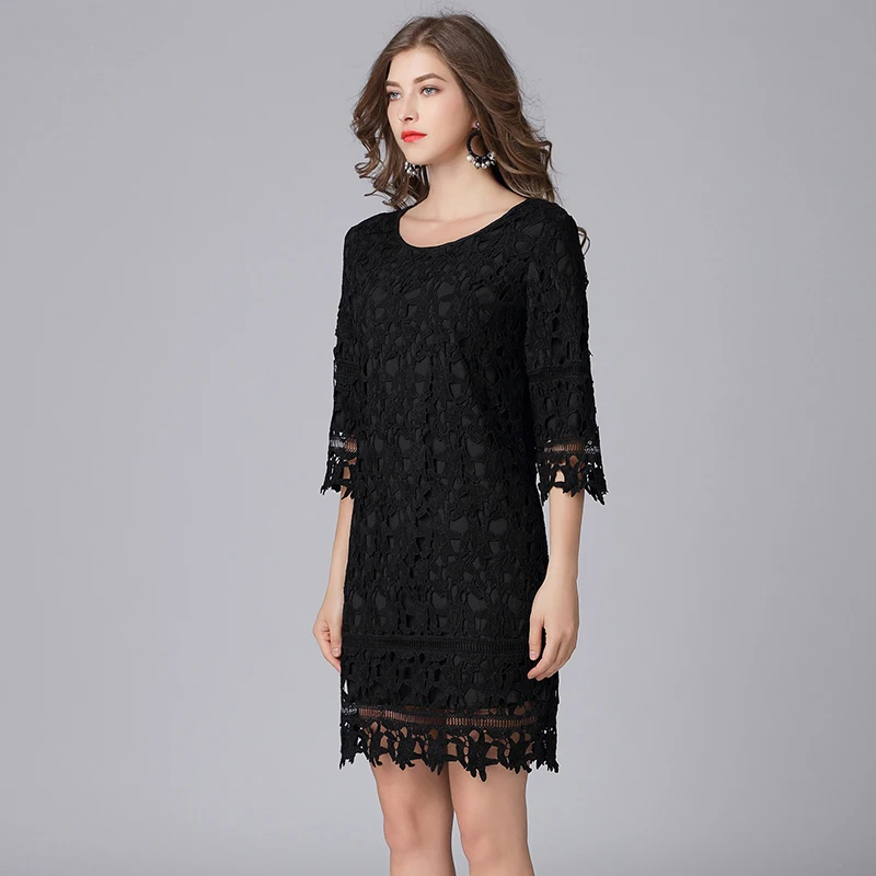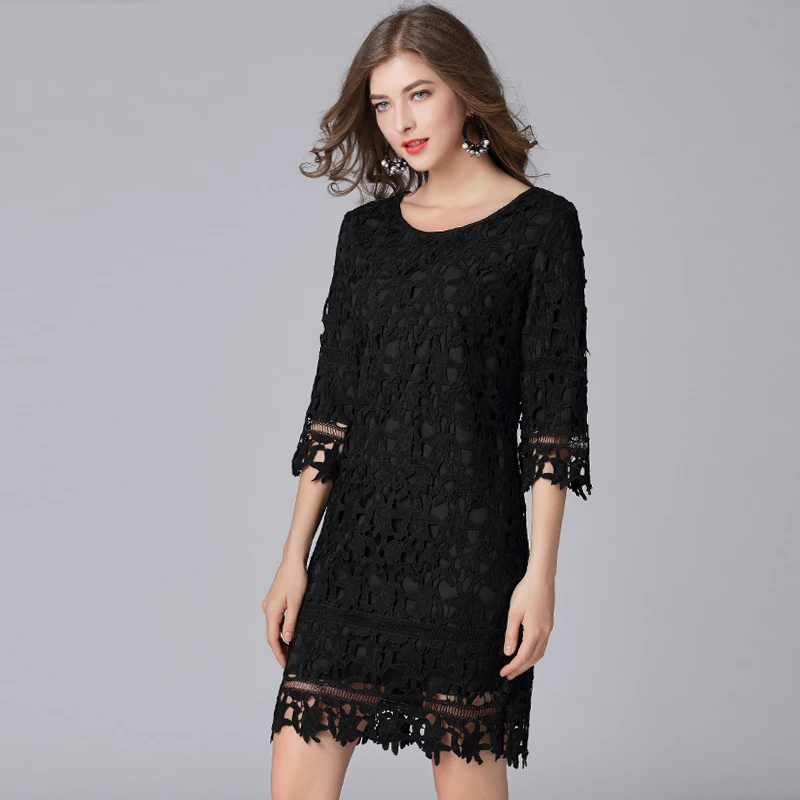 Special Offer TAOYIZHUAI nuevo color negro Oficina vestido de señora recto tres cuartos patchwork por encima de la rodilla tamaño grande Oficina vestido de fiesta 14026 Discount 45% Today!