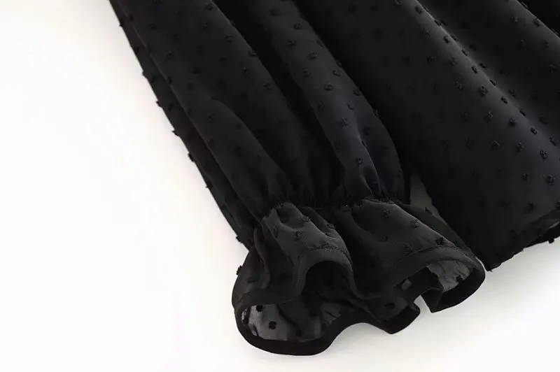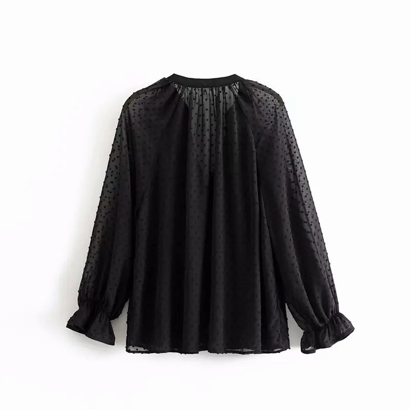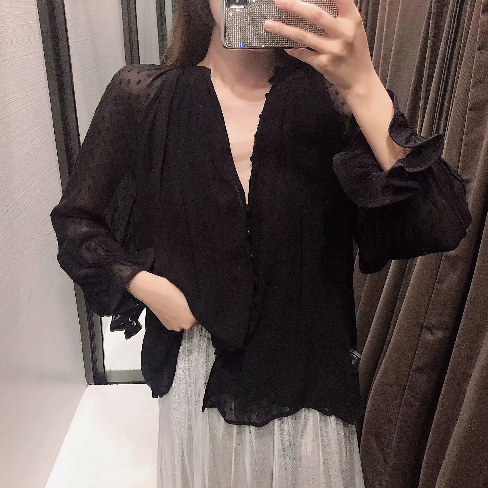 Special Offer Las nuevas mujeres de moda de cuello en v hebillas solo negro Camisa de gasa blusas de mujeres, manga linterna femininas camisa volantes camisas LS4052 Discount 0% Today!