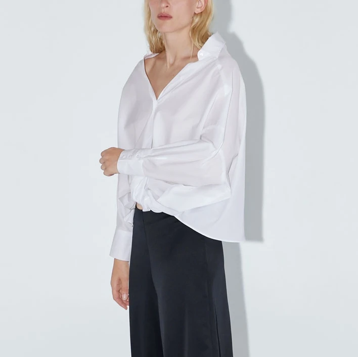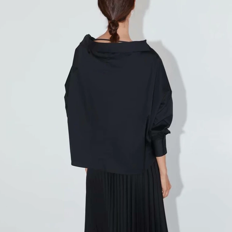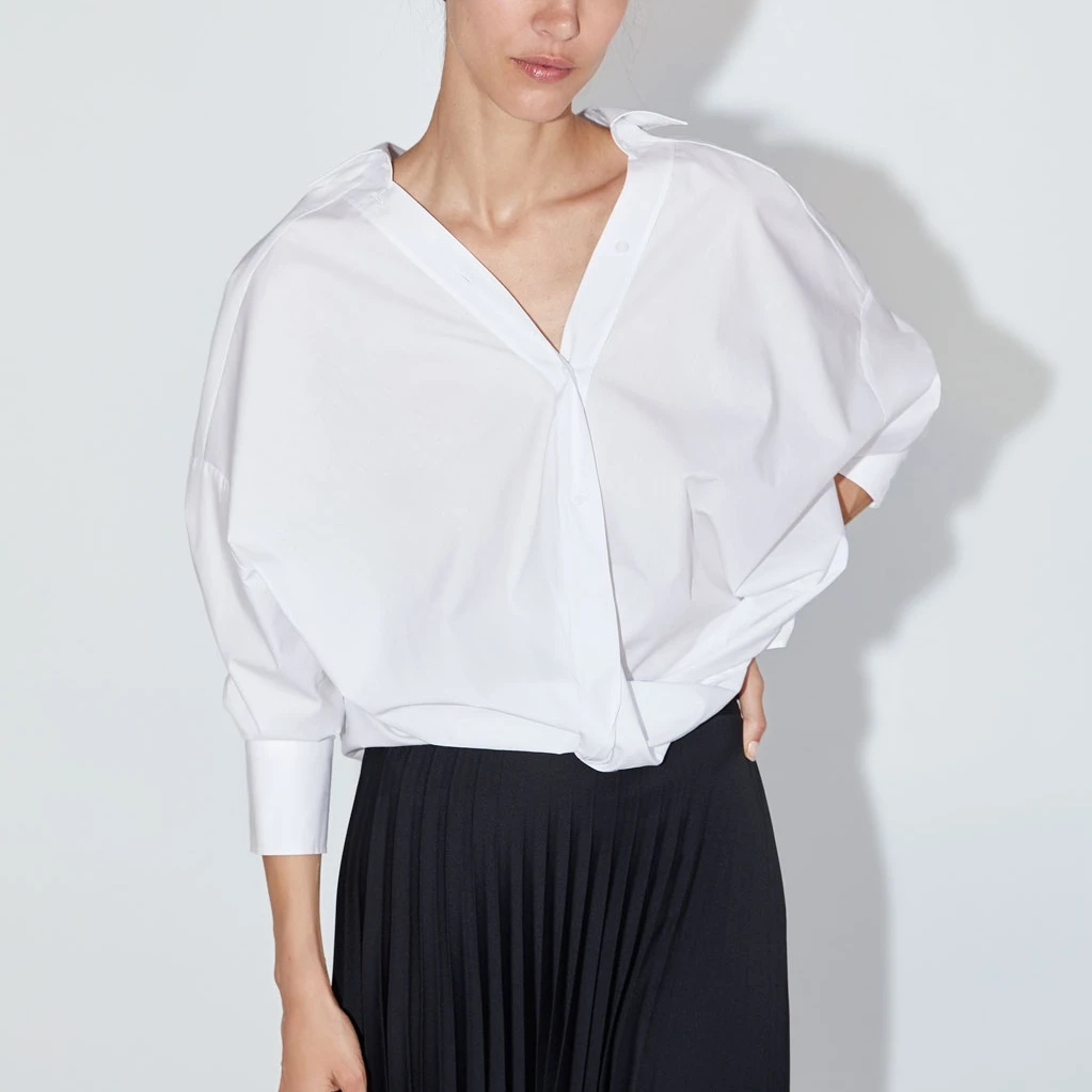 Special Offer 2019 otoño nuevas mujeres blusas negro manga larga popelina cuello en V sólido manga de murciélago Casual nudo decoración mujeres Tops Discount 15% Today!