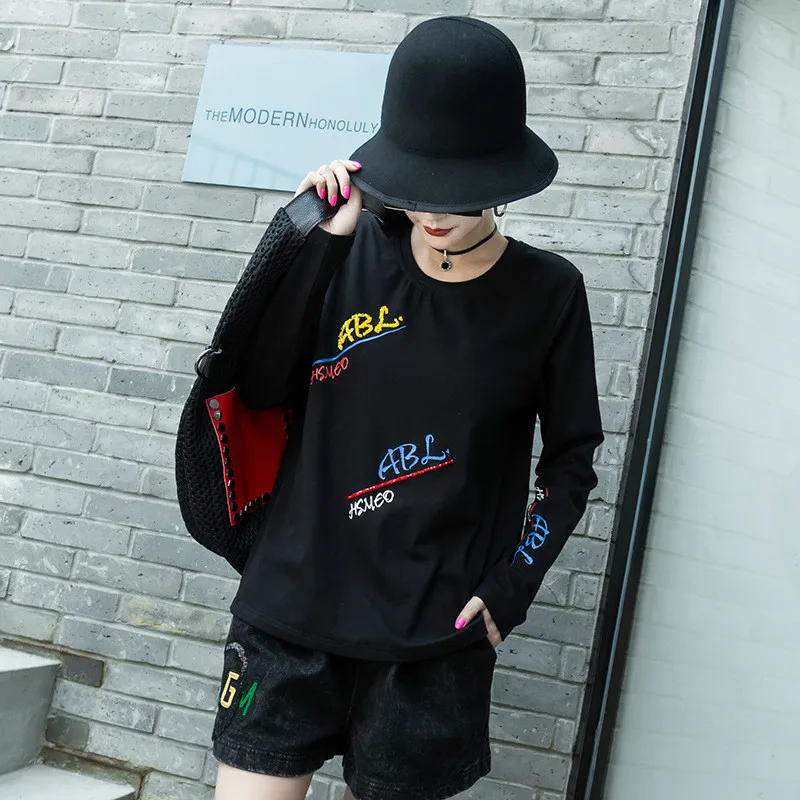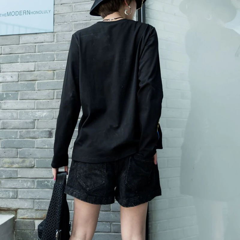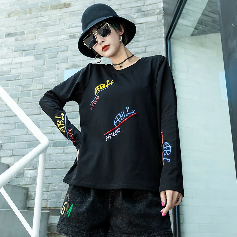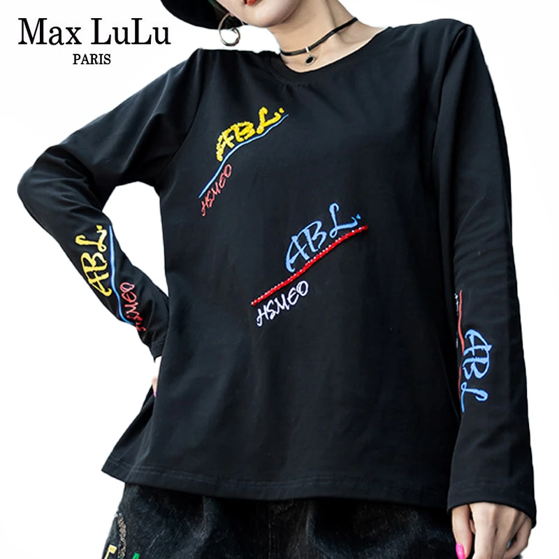 Special Offer Max LuLu nuevo 2019 invierno moda coreana señoras Vintage camisetas de manga larga mujeres Casual bordado Tops negro camisetas sueltas Discount 23% Today!