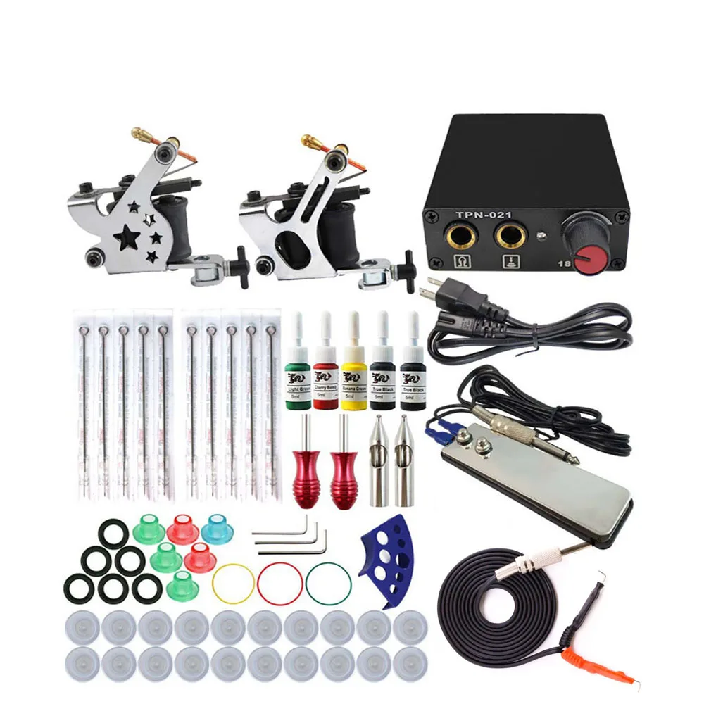 Special Offer Kit completo de máquina de tatuaje Juego de 2 bobinas pistolas 5 colores conjuntos de pigmento negro tatuaje poder Kits de agarre para principiantes maquillaje permanente Discount 24% Today!