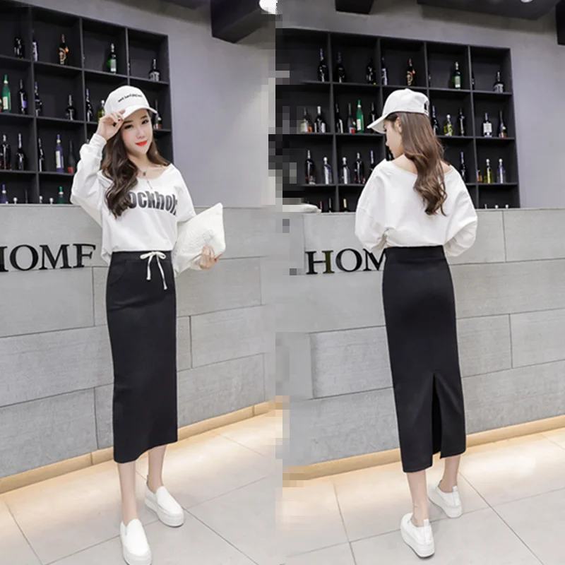 Special Offer Primavera Verano mujeres Sexy ceñido al cuerpo Falda larga de pierna dividida negro alta cintura apretado Maxi faldas Club fiesta desgaste elegante falda lápiz D157 Discount 39% Today!