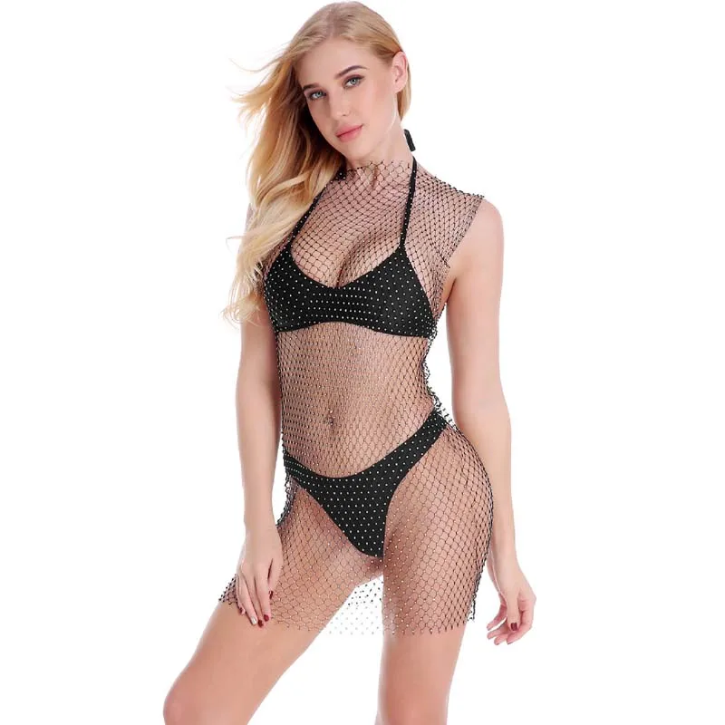 Special Offer Vestidos de fiesta de verano para mujer Sexy sin mangas con agujeros de malla negra blanca y diamantes de imitación de la Reina del Festival Discount 40% Today!