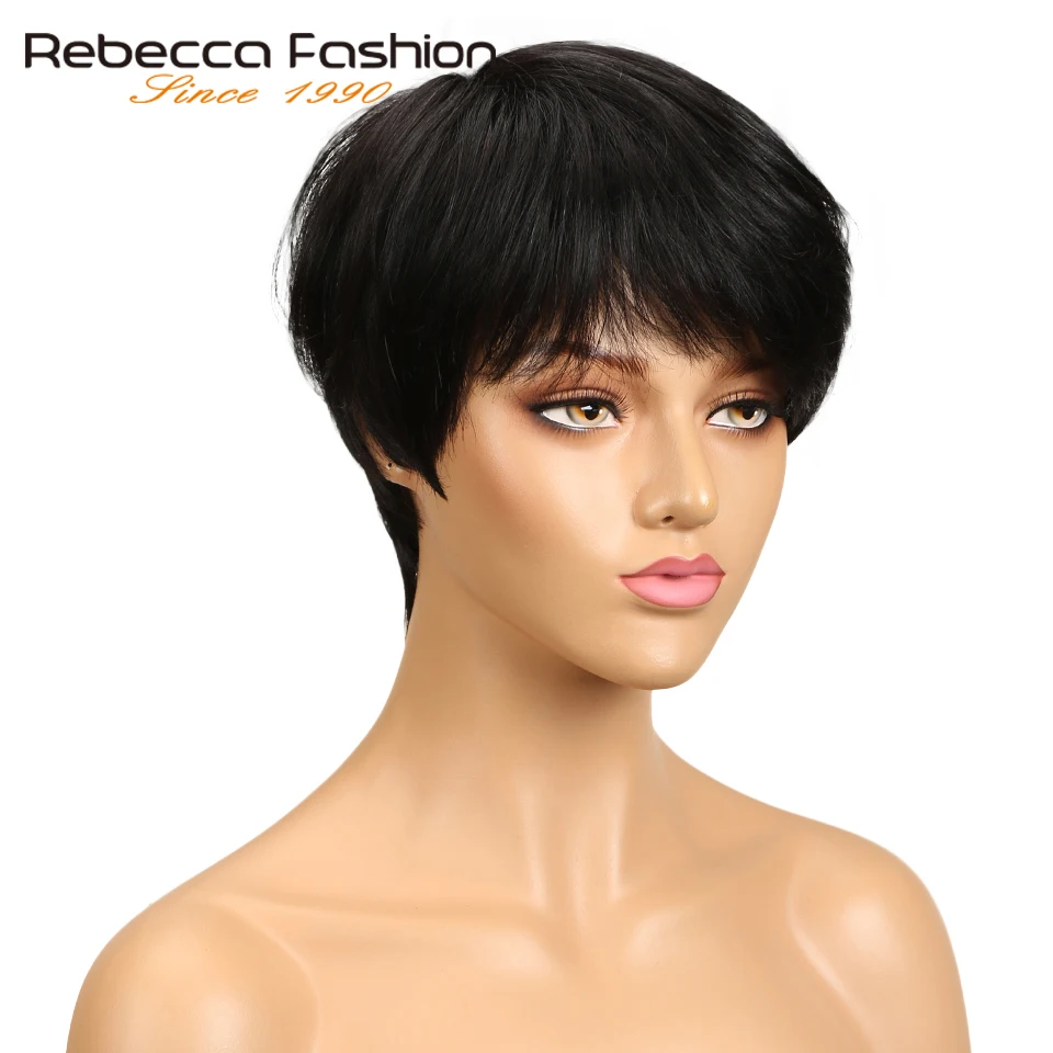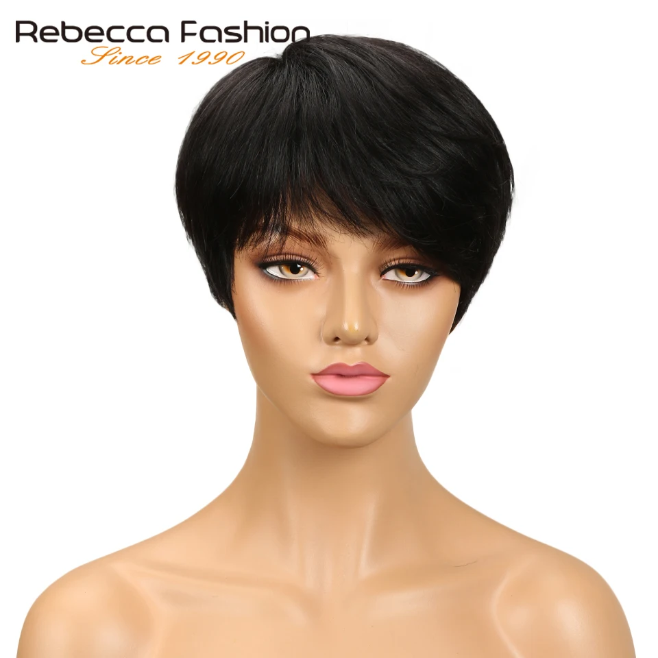 Special Offer Peluca de pelo liso corto de Rebeca pelucas de cabello humano Remy peruano para mujeres negras Color rojo marrón mezcla hecha a máquina peluca envío gratis Discount 41% Today!