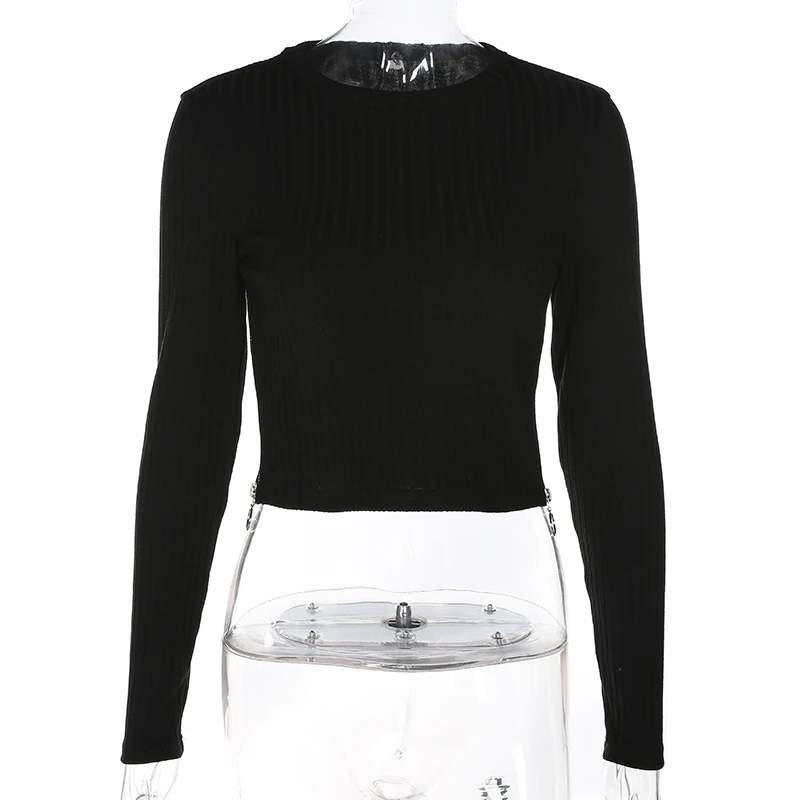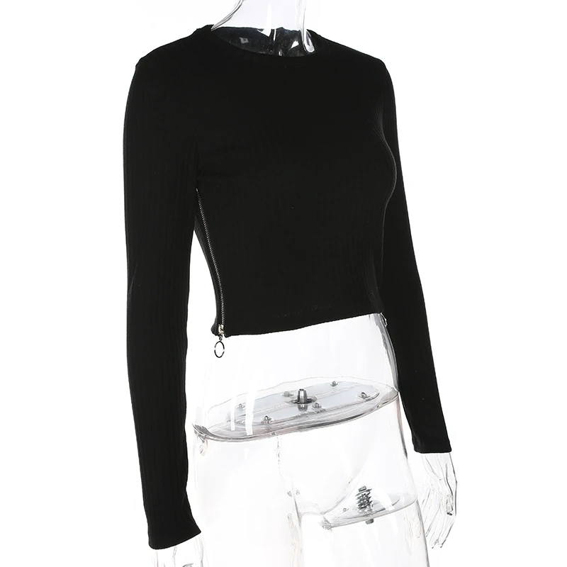 Special Offer Sweetown Harajuku Otoño Invierno camiseta negro coreano moda lateral cremallera dividida camisa mujer rayas Crop superior manga larga Camiseta Discount 43% Today!