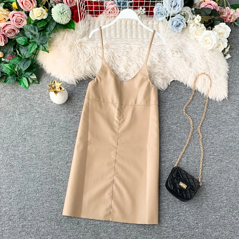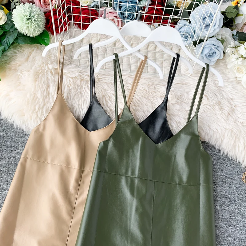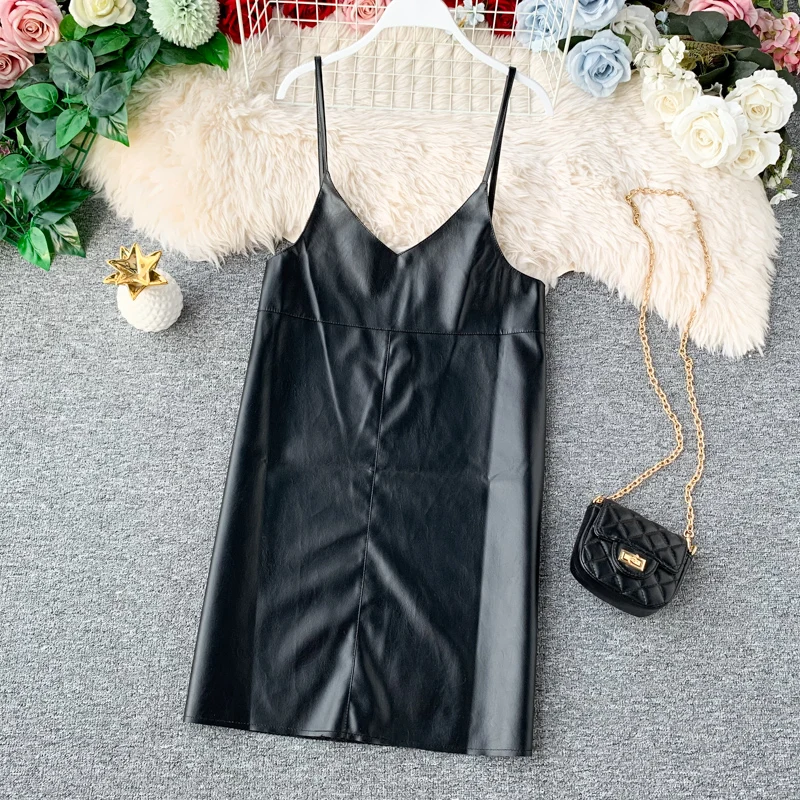 Special Offer 2019 nuevo Primavera Verano moda PU cuero vestido Mujer mini sexy vestido cremallera negro Correa vestidos vestido de fiesta puro Discount 90% Today!