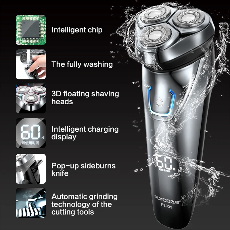 Special Offer Flyco máquina de afeitar eléctrica IPX7 impermeable 1 hora de carga recargable lavable Rotary FS339H hoja de aceite Discount 0% Today!