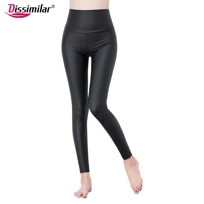 Special Offer Mallas de cuero de PU de cintura alta DISSIMILAR Sexy ajustado cuero negro mate negro Leggins hasta el tobillo pantalones elásticos para las mujeres Discount 0% Today!