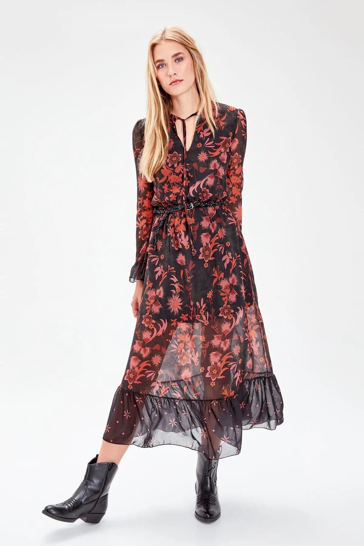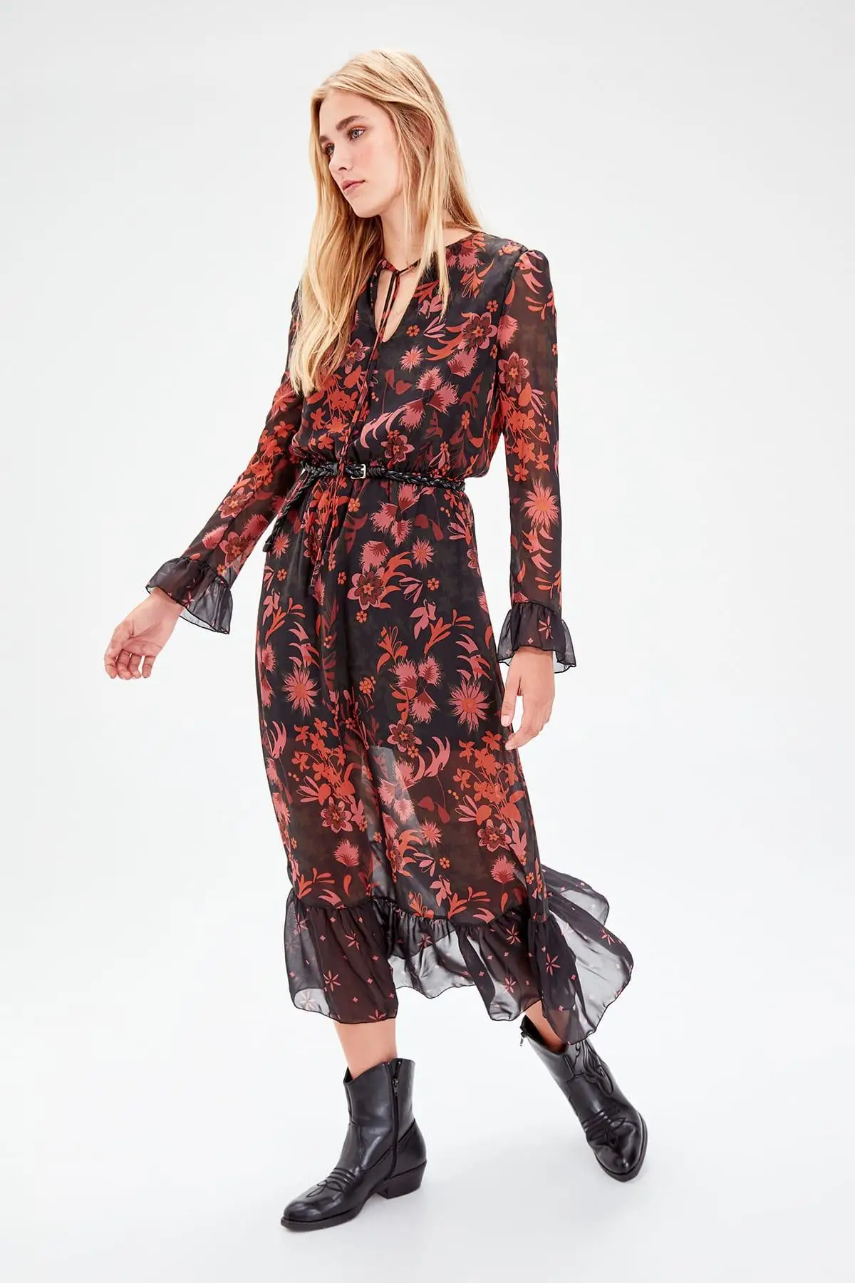 Special Offer Trendyol vestido negro con detalle de cordones TCLAW19EH0212 Discount 0% Today!