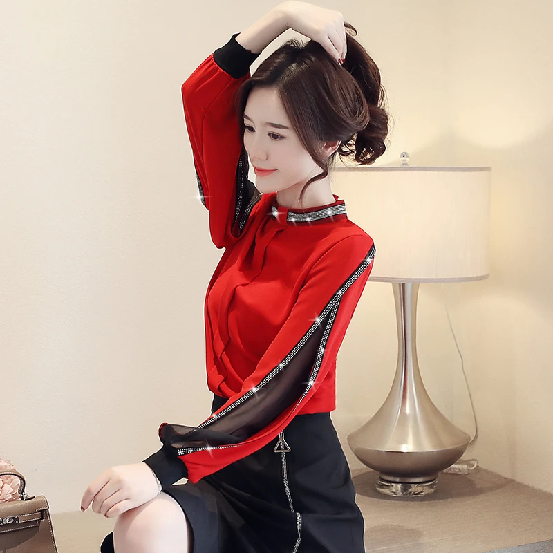 Special Offer Nueva primavera 2020 estilo blusa Casual de manga larga de moda femenina de gasa manga de linterna mujeres de pie cuello whtite blusa negra 834G5 Discount 32% Today!