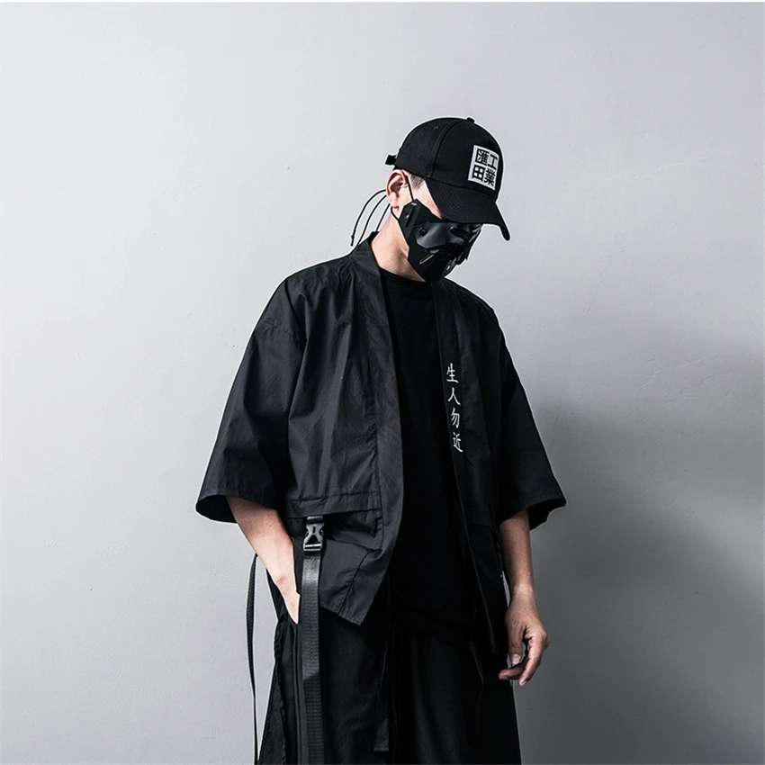 Special Offer Kimono tradicional japonés cárdigan negro algodón moda escenario Haori Samurai Cosplay disfraces estilo chino abrigo Streetwear Discount 39% Today!