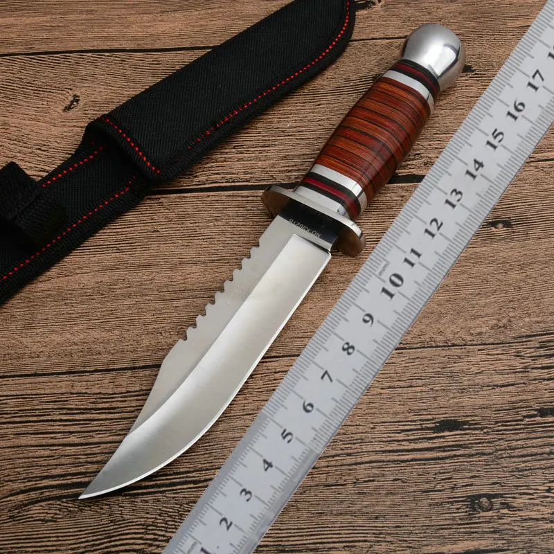 Special Offer Hysenss dura hoja fija cuchillo mango de madera táctico Camping caza senderismo supervivencia rescate bolsillo EDC herramientas funda de Nylon Discount 20% Today!