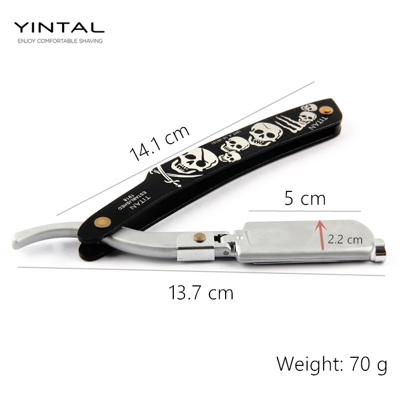 Special Offer Maquinilla de afeitar recta brillante pulidor de plata para hombre maquinilla de afeitar reemplazable hoja de afeitar cabeza de cráneo de impresión con 5 cuchillas 1 funda Discount 22% Today!