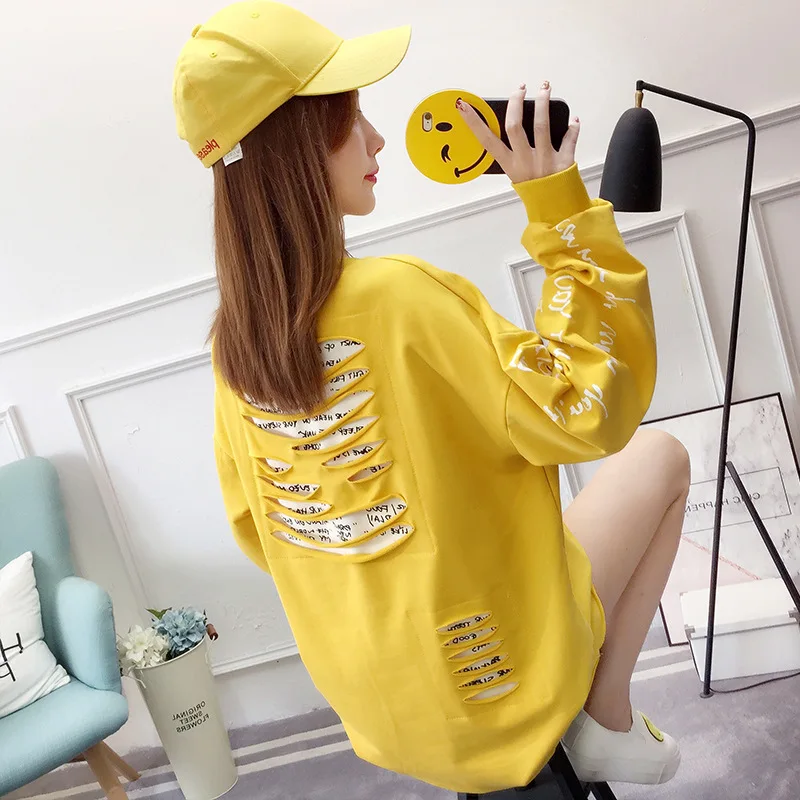 Special Offer #4807 estudiante de moda coreana suelta tamaño grande Hip Hop sudadera Harajuku Streetwear chándal mujer blanco Negro amarillo rosa Discount 25% Today!