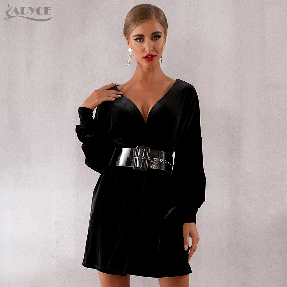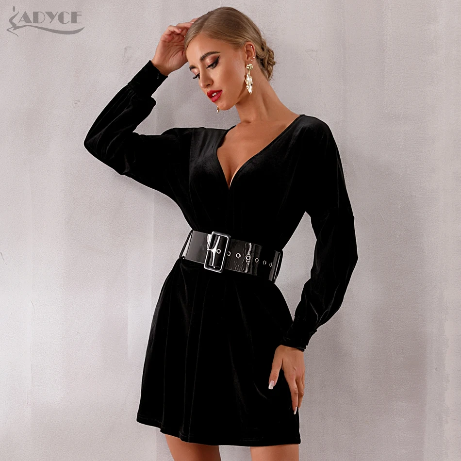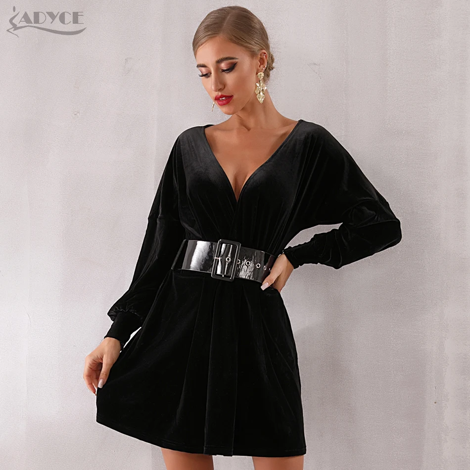 Special Offer Adyce 2019 nuevo primavera Vestido de las mujeres Vestido de fiesta, de noche, de celebridad Sexy de manga larga negro profundo V pista Vestido Club Vestido Discount 27% Today!