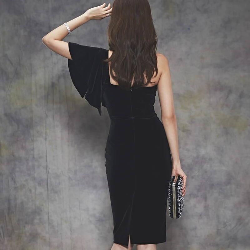 Special Offer BGTEEVER Sexy negro de un solo hombro de terciopelo para mujer vestido de fiesta elegante ceñido a la cintura ceñido vestido sin tirantes Mujer Sexy Vestidos Mujer Discount 30% Today!