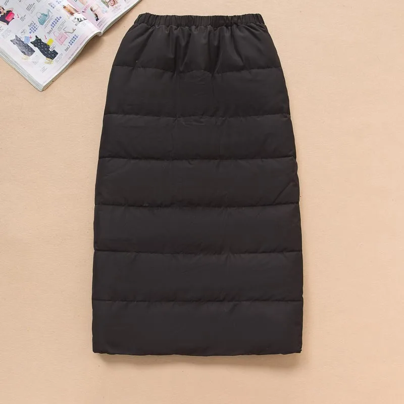 Special Offer Kohuijoo mujer pato blanco abajo falda otoño sólido de talla grande invierno falda femenina Casual Midi pantorrilla cálido acolchado falda lápiz negro Discount 32% Today!