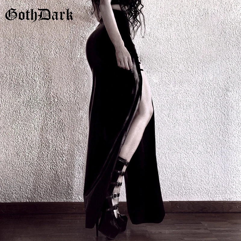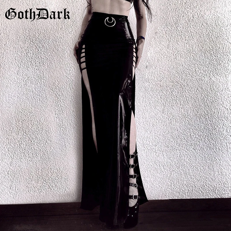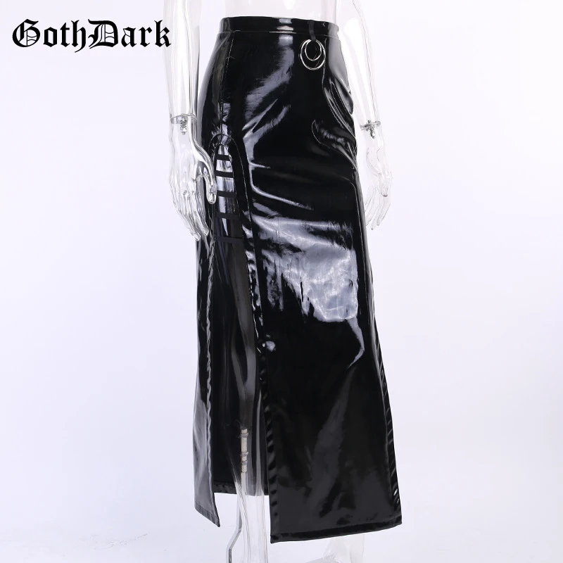 Special Offer Goth negro oscuro Vintage gótico Falda larga Harajuku cremallera empalmada Punk otoño 2019 invierno estético PU Metal anillo falda Grunge Discount 40% Today!