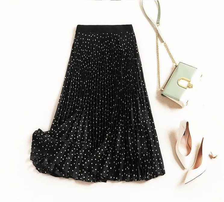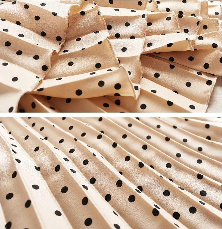 Special Offer Falda plisada línea A mujer Polka Dot Vintage Midi falda alta calidad elegante Beige negro verano otoño falda LS 9820 Discount 42% Today!