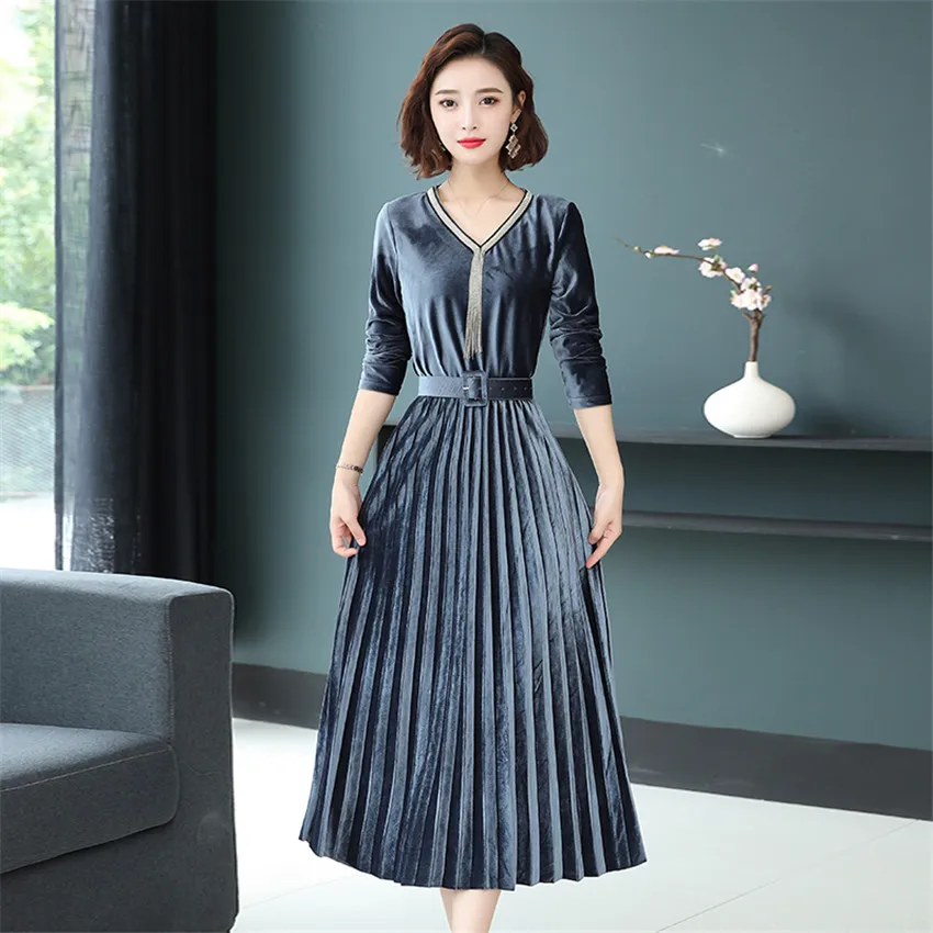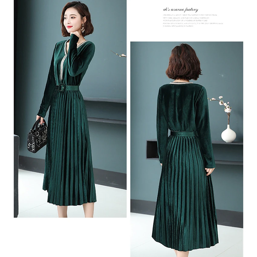 Special Offer 3XL mujeres Verde Negro terciopelo vestido de invierno Vestido de manga larga Vintage plisado Vestidos de talla grande mujeres ropa Vestidos Robe Mujer Discount 45% Today!