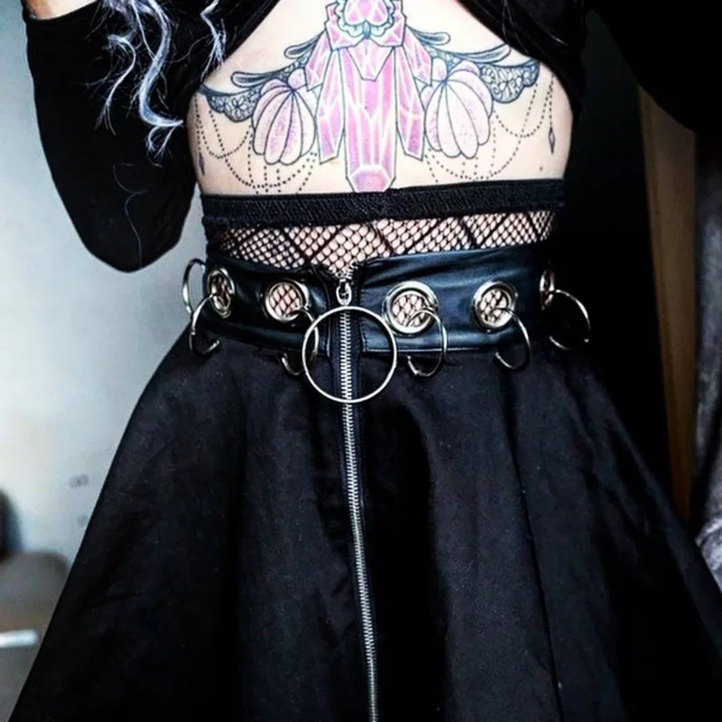 Special Offer Falda gótica Línea A de verano Sexy Hoop Out faldas plisadas Goth anillo de hierro negro Mini faldas cortas para mujer falda Casual Discount 45% Today!