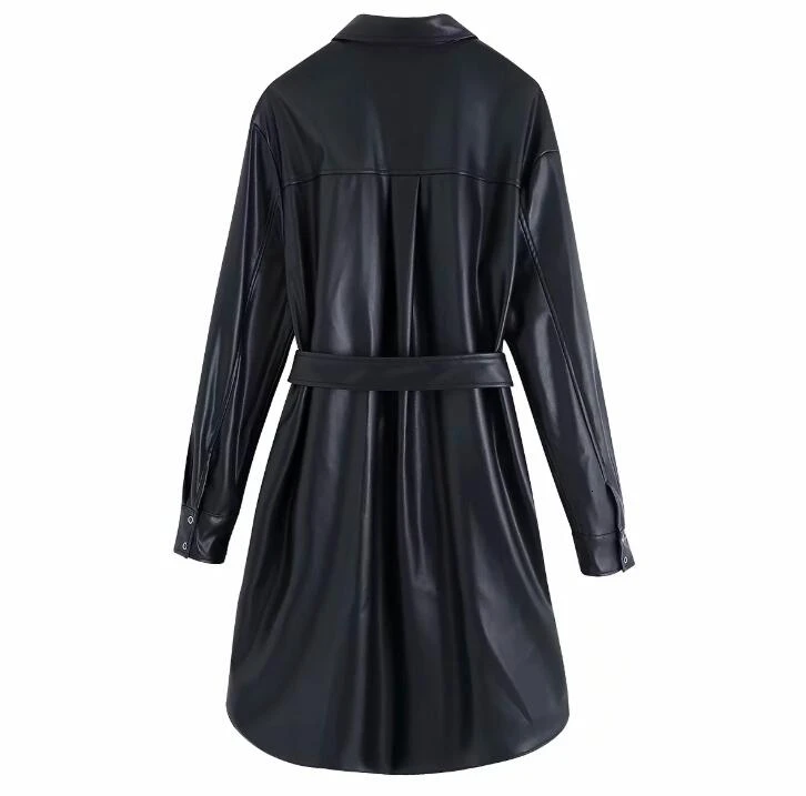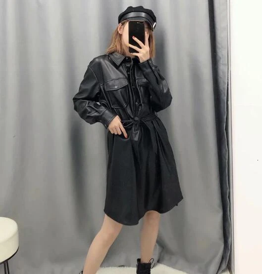 Special Offer Vestido camisa de cuero negro vestido de invierno mujeres de manga larga con cordones Vestidos ropa de calle europea Discount 50% Today!