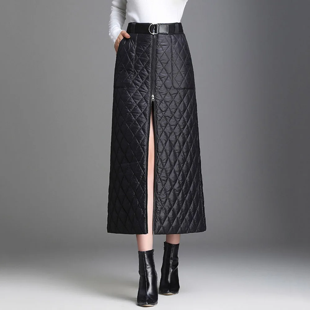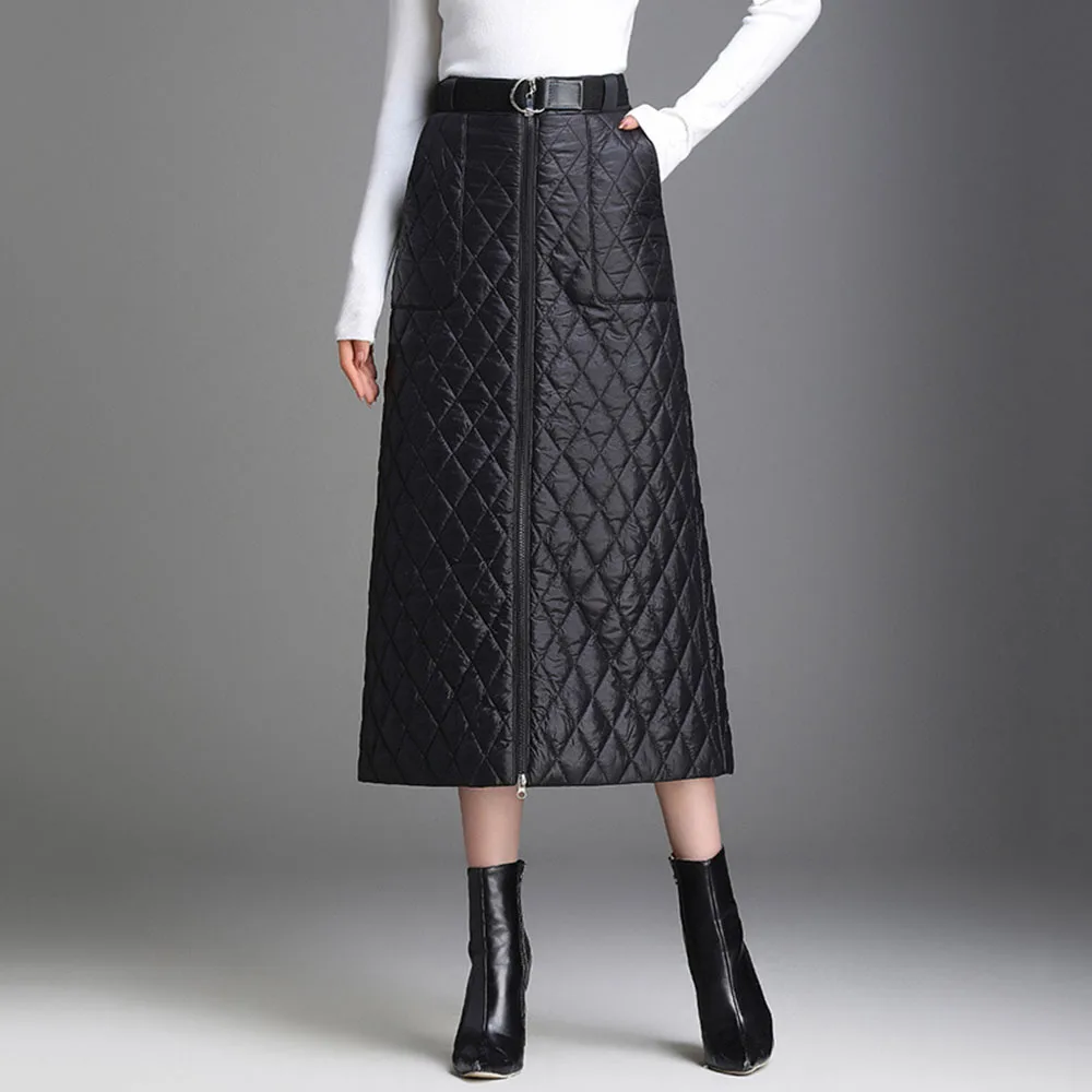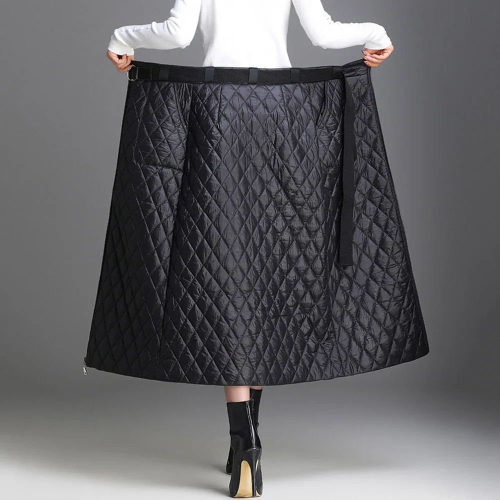 Special Offer Invierno 2019 nueva moda de talla grande caliente de algodón grueso acolchado faldas negro A line casual Oversize 3XL 4XL falda de invierno con cremallera Discount 52% Today!