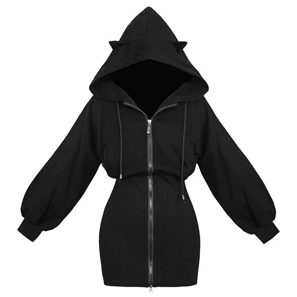 Special Offer Moda bonita oreja de gato Patchwork Hoodies sudadera Harajuku para mujer cremallera negro Punk gótico largo sudadera femenina chaqueta de otoño Discount 49% Today!