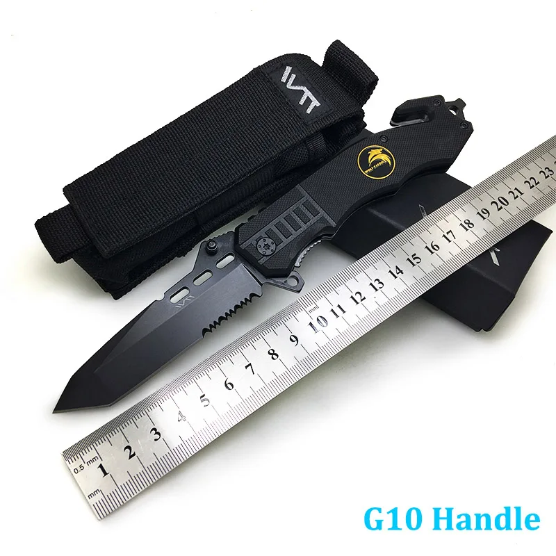 Special Offer WTT 229 cuchillo de caza plegable negro 7CR17Mov medio serrado hoja táctica Camping supervivencia combate cuchillos de bolsillo EDC Multi herramientas Discount 20% Today!