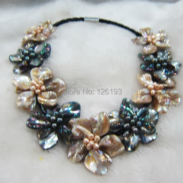 Special Offer Champagne y Perla Negra Concha madre tejido flor colgante collar Discount 30% Today!