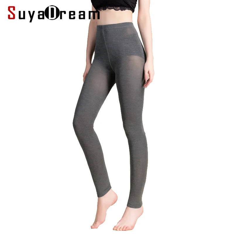 Special Offer Mujeres Leggings 50% seda 30% algodón 20% Spandex sólido Delgado leggings largo completo pantalones de fondo 2018 nuevo negro gris Discount 30% Today!