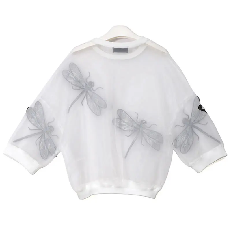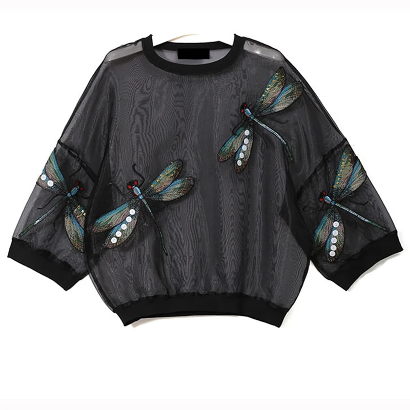 Special Offer XITAO negro blanco malla camiseta libélula camiseta mujer bordado Sheer Kawaii camiseta de talla grande Chemise Femme nuevo LJT1723 Discount 30% Today!