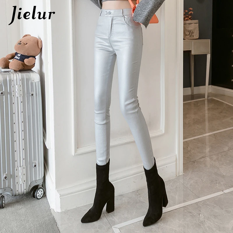 Special Offer Jielur nuevo PU Faux cuero Leggings mujeres 2019 flaca plata Rojo Negro Pantalones Mujer señora S 3XL Delgado polar lápiz Leggins Mujer Discount 36% Today!