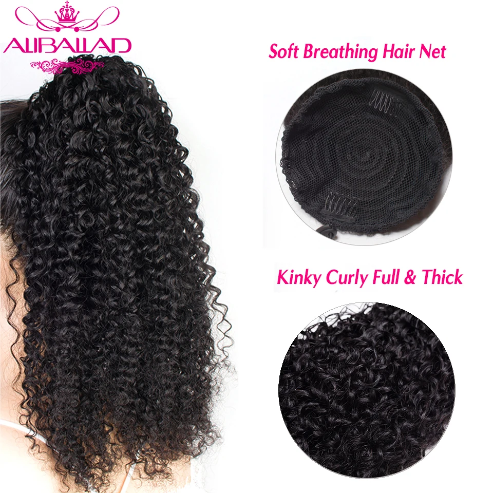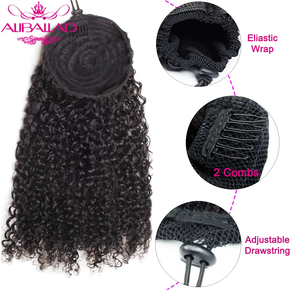 Special Offer Aliballad rizado Cordón de cola de caballo pelo humano brasileño Afro Clip en extensiones para mujeres negras no Remy 2 peines Discount 39% Today!