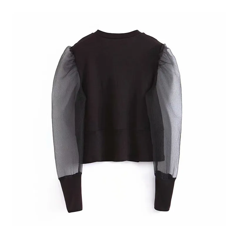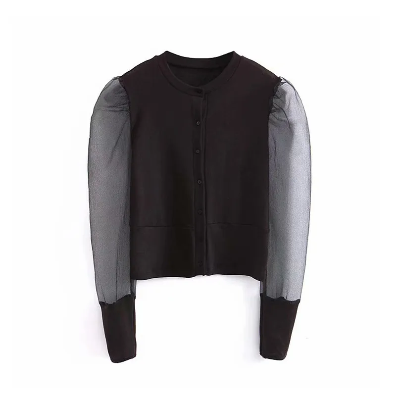 Special Offer Blusa sexy y elegante de color negro sólido manga larga de soplo elástico transparente cuello redondo para mujer 2019 casual elegante marca blusas Discount 40% Today!