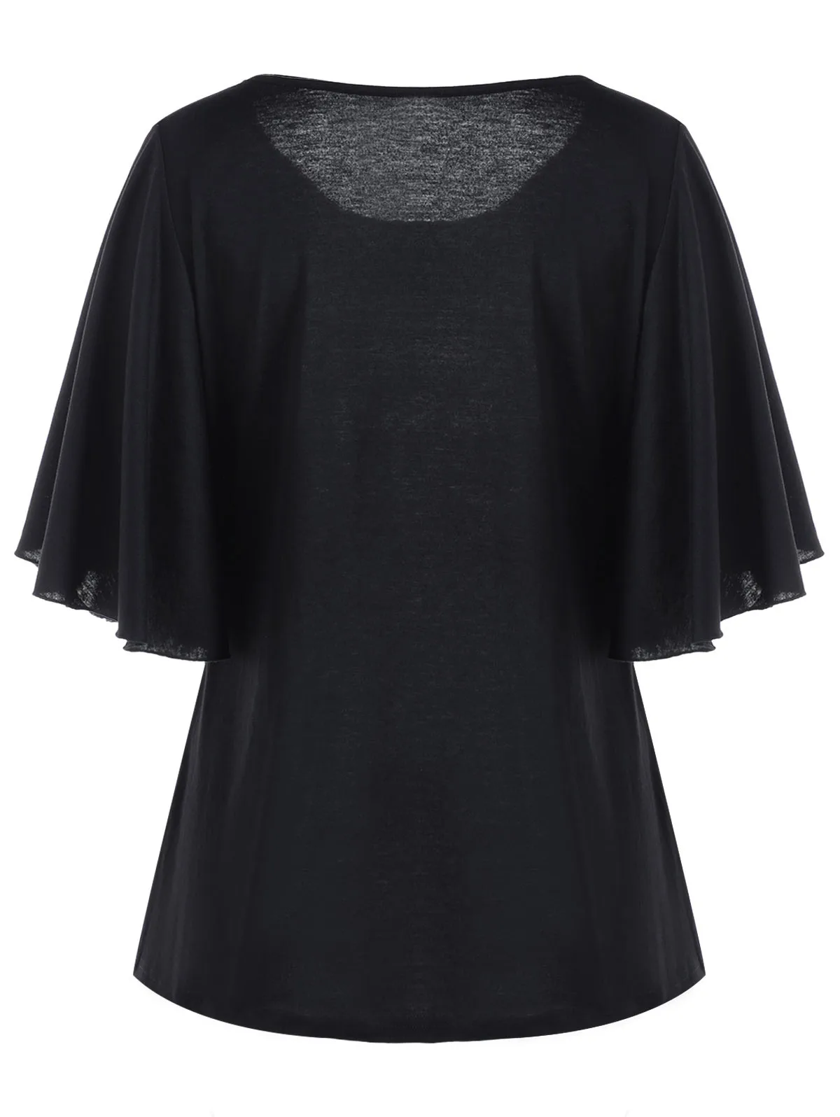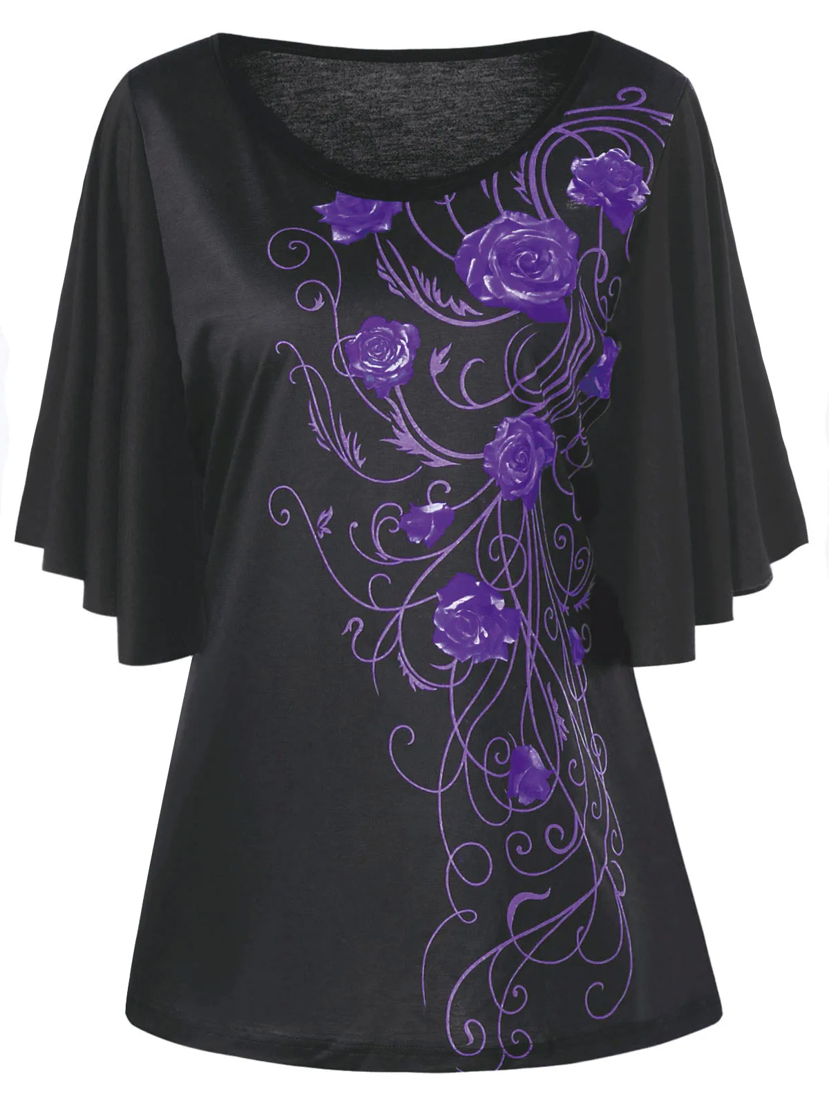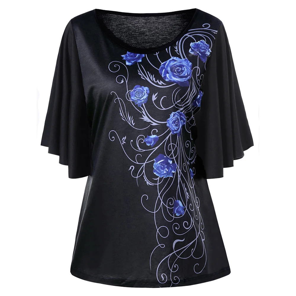 Special Offer Rosegal de talla grande diminuto estampado Floral manga de murciélago camiseta mujer Casual negro camiseta señoras camisetas 2018 nuevo gran tamaño 5XL camisetas Discount 40% Today!