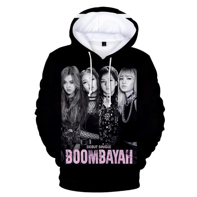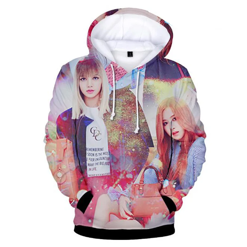 Special Offer Moda coreana K POP KPOP negro rosado álbum JENNIE ROSE LISA JISOO 3D sudaderas con capucha mujer hombres K POP ropa Discount 42% Today!