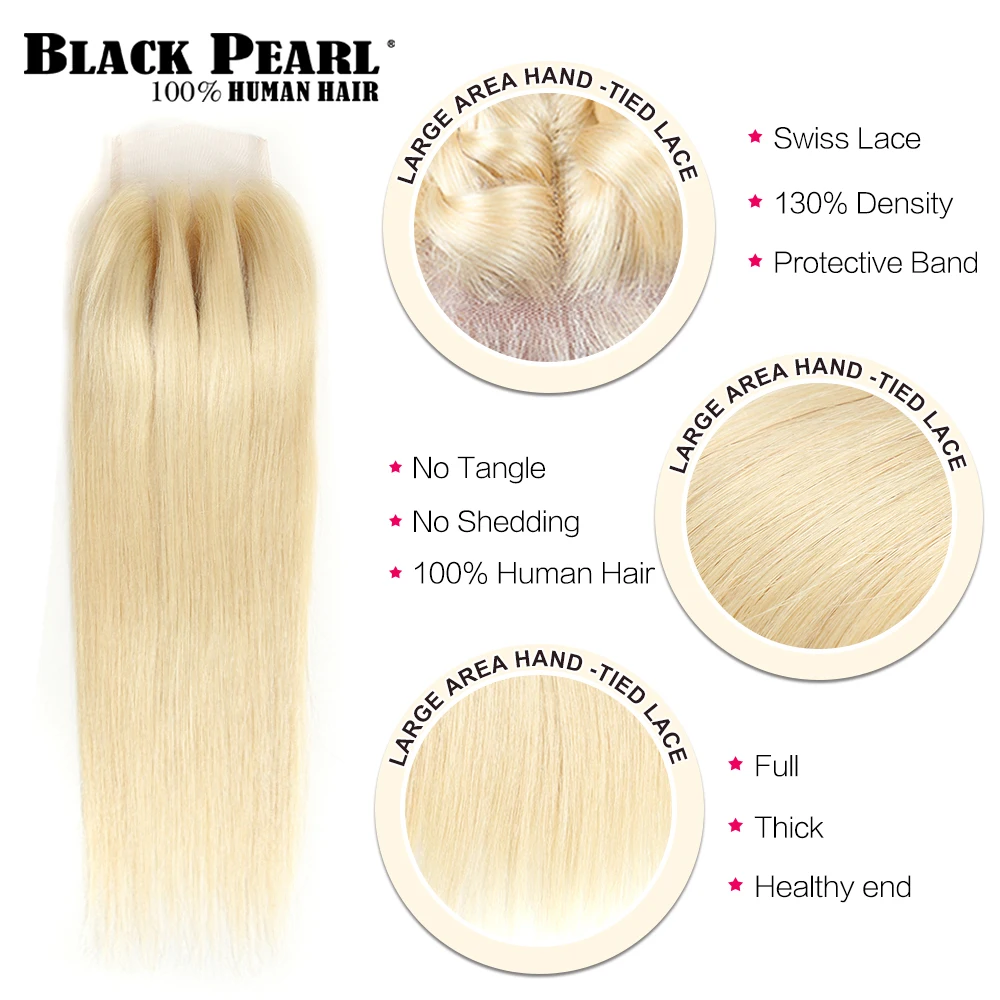 Special Offer Mechones negros de perlas miel rubio con cierre brasileño Remy pelo humano recto 613 mechones con cierre envío gratis Discount 43% Today!