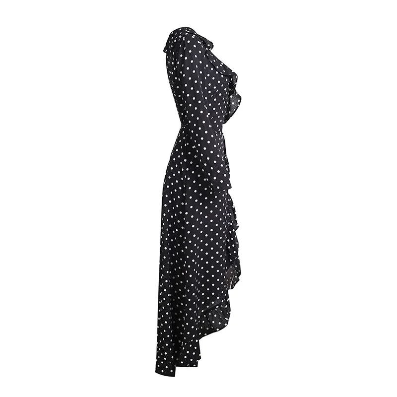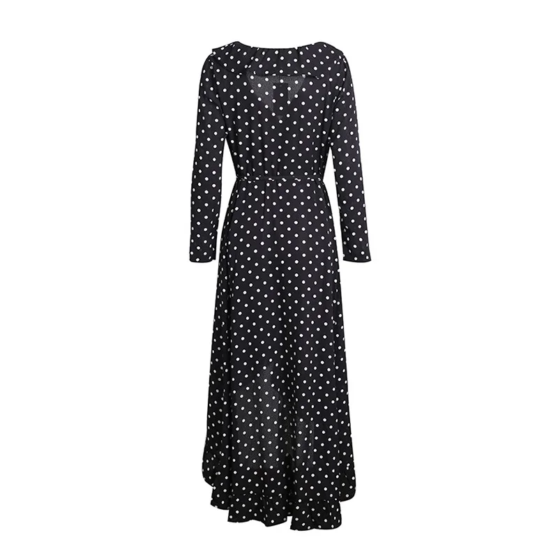 Special Offer vestido lunares Lunares negro vestido largo mujer sexy de manga larga cuello en v estampado de dividir vestido playa vacaciones vestido Discount 45% Today!